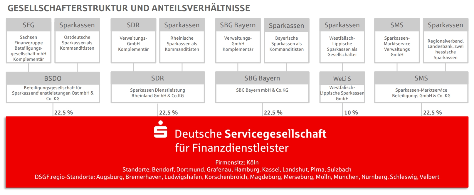 Für die ersten beiden Führungsebenen unterhalb der Geschäftsführung war bis zum 30. Juni 2017 eine Quote von 30% angestrebt. Diese Zielgröße wurde auch nach Zusammenschluss mit der Sparkassen-Marktservice GmbH erreicht.